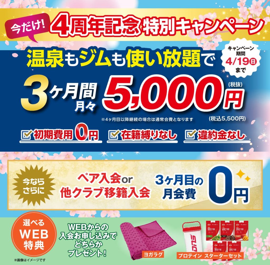 特典① 月会費3ヶ月間 月々5,000円(税込5,500円)