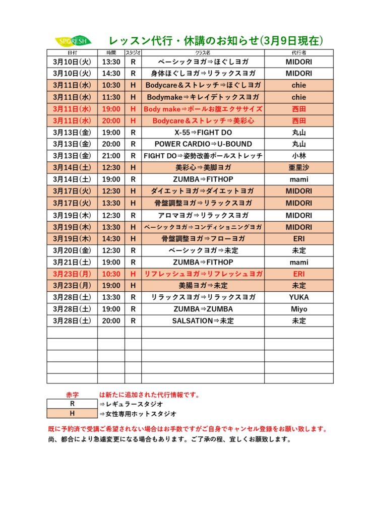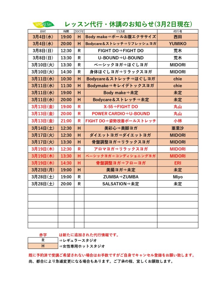 スタジオレッスン代行情報